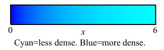 Notice that the mass of both bars is \(M=18\). Since the lengths are both \(L=6\), the average densities are the same: \[ \delta_\text{ave}=\dfrac{M}{L}=\dfrac{18}{6}=3 \] Since the non-uniform bar is heavier for \(x>3\), the center of mass, \(\bar{x}=4\), is on that side.