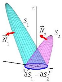 We say a vector field \(\vec F\) has surface independent surface integrals if \(\displaystyle \iint_{S_1} \vec F\cdot d\vec S =\iint_{S_2} \vec F\cdot d\vec S\) whenever \(S_1\) and \(S_2\) have the same boundary, i.e. \(\partial S_1=\partial S_2\) with the same orientation.